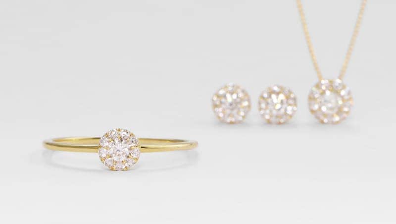 センターの宝石を小さな宝石で取り囲んだヘイローは取り巻きとも呼ばれる華やかでリッチなコレクション。