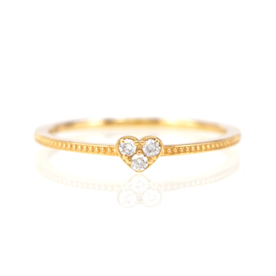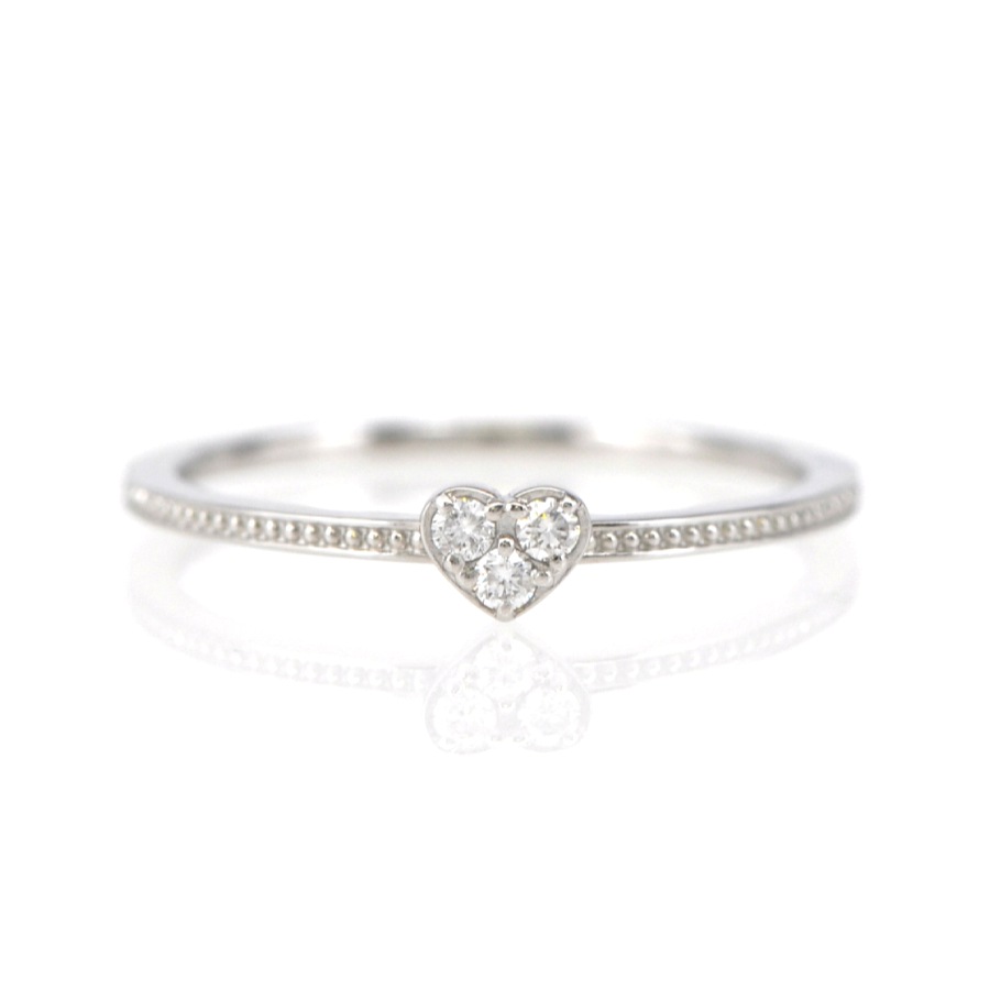 小さなハートを支える繊細なミルグレイン調のデザインが上品なポイント。ダイヤモンドのきらめきを可憐に引き立てます。