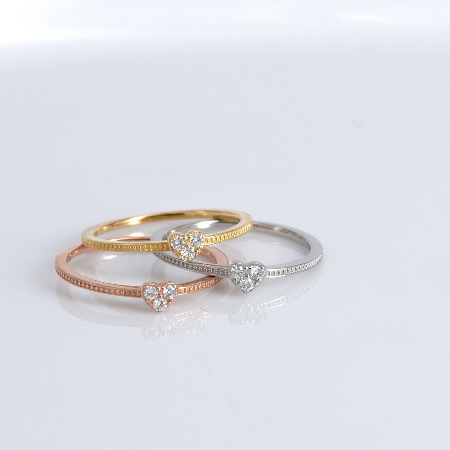 ダイヤモンドを3石あしらい小さくも存在感のあるハートのリングに仕上げました。