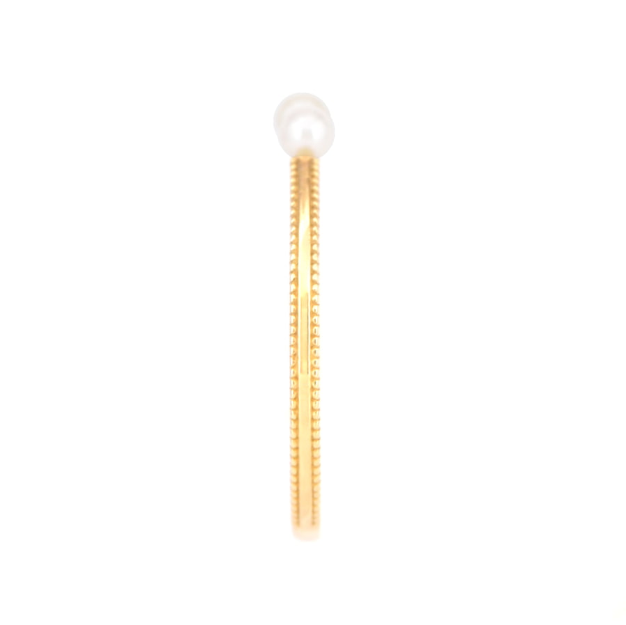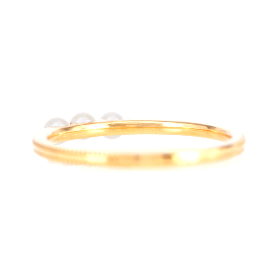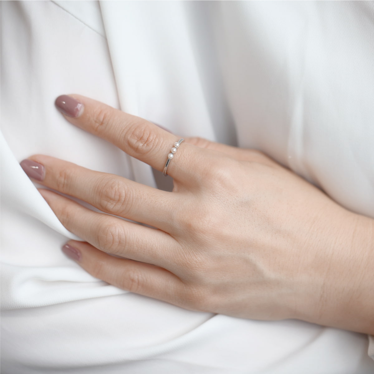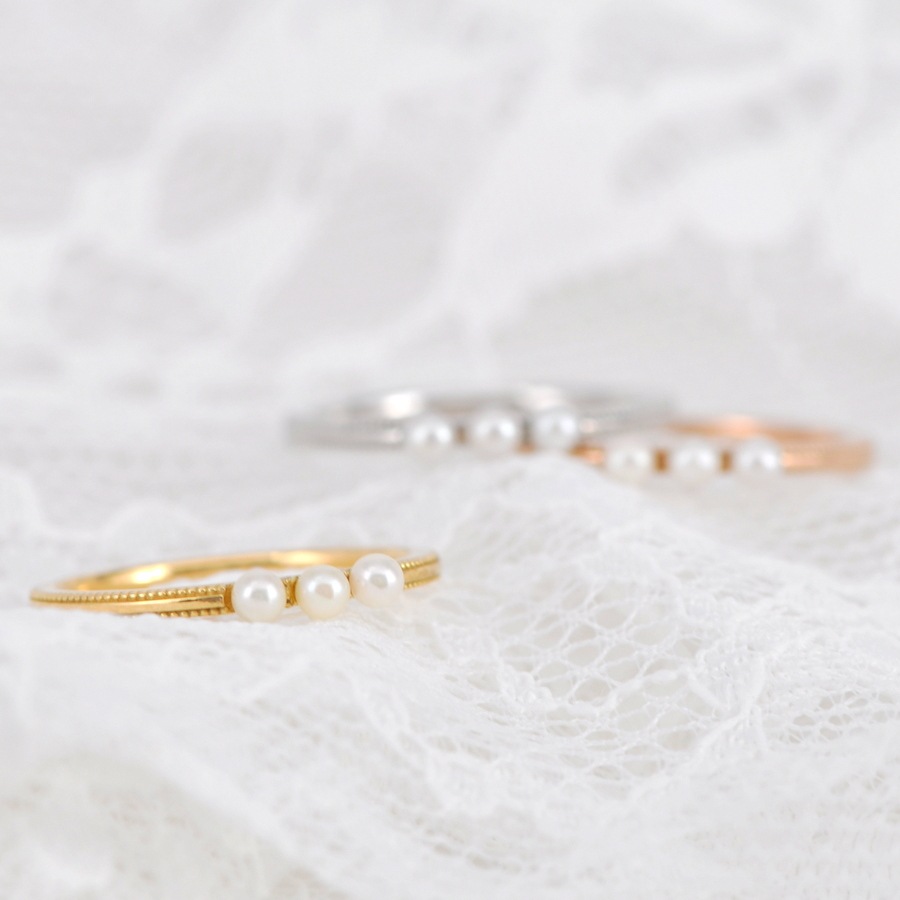 ベビーパールが三粒輝く、毎日のコーディネートに馴染む繊細なリング。