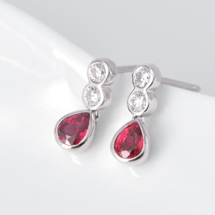 | 宝石 | 天然非加熱ピジョンブラッドルビー 計0.40ctUP/片側0.20ctUP(1p) 天然ダイヤモンド 計0.20ct/片側0.10ct(2p) |