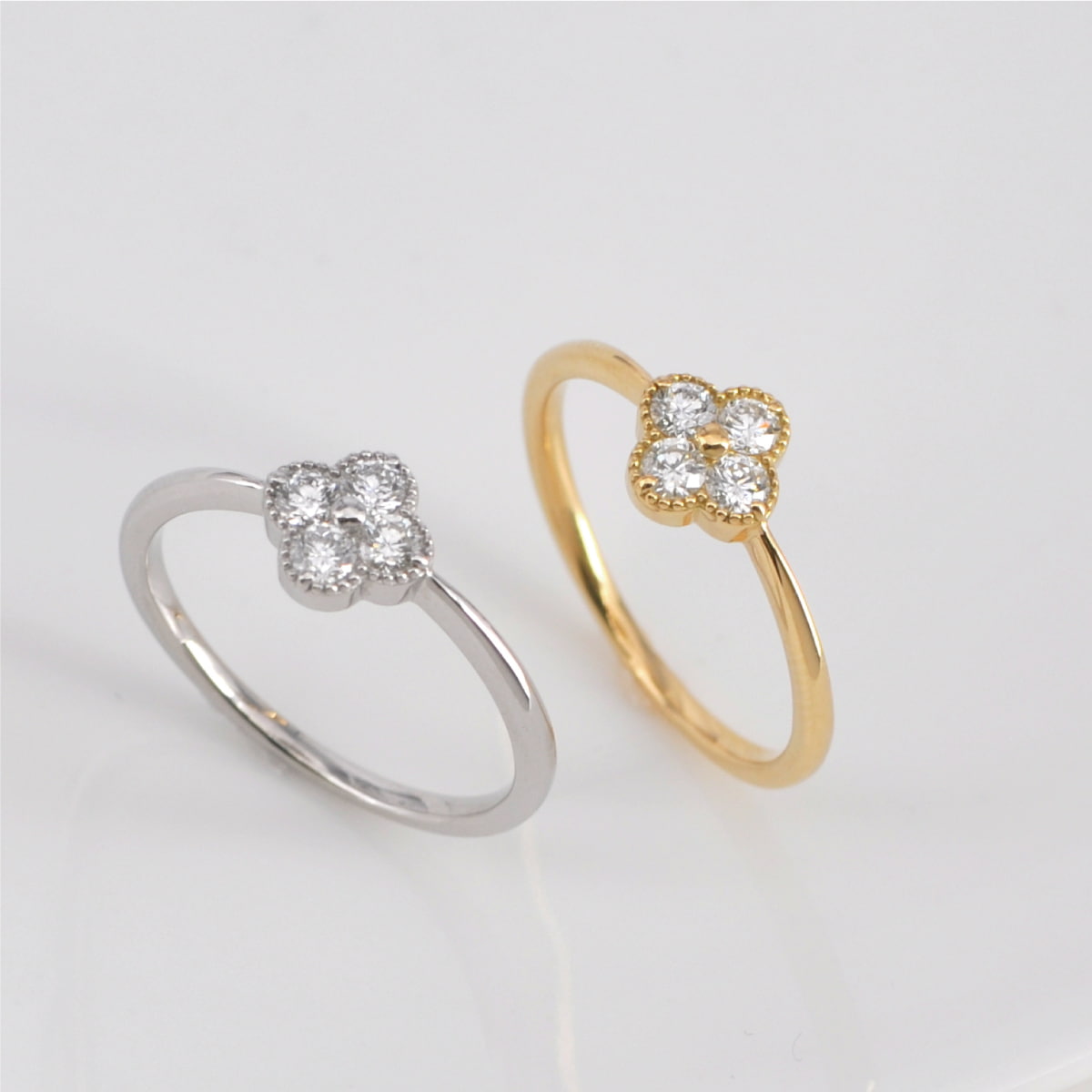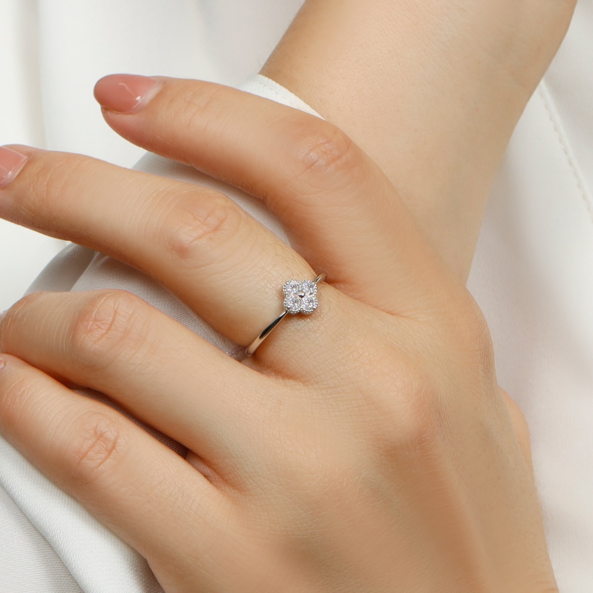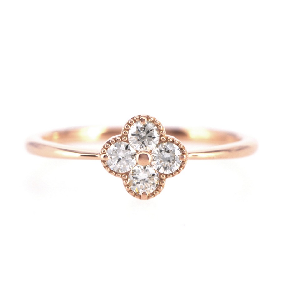 フラワーモチーフの可愛らしさと、華やかさを演出できるダイヤモンドリング。