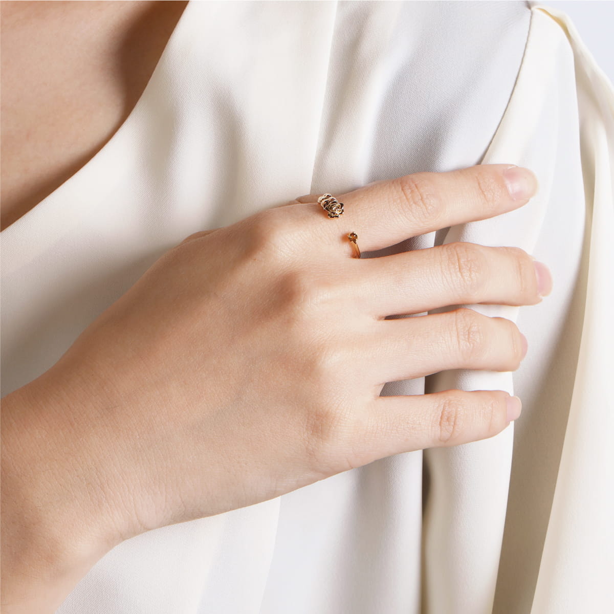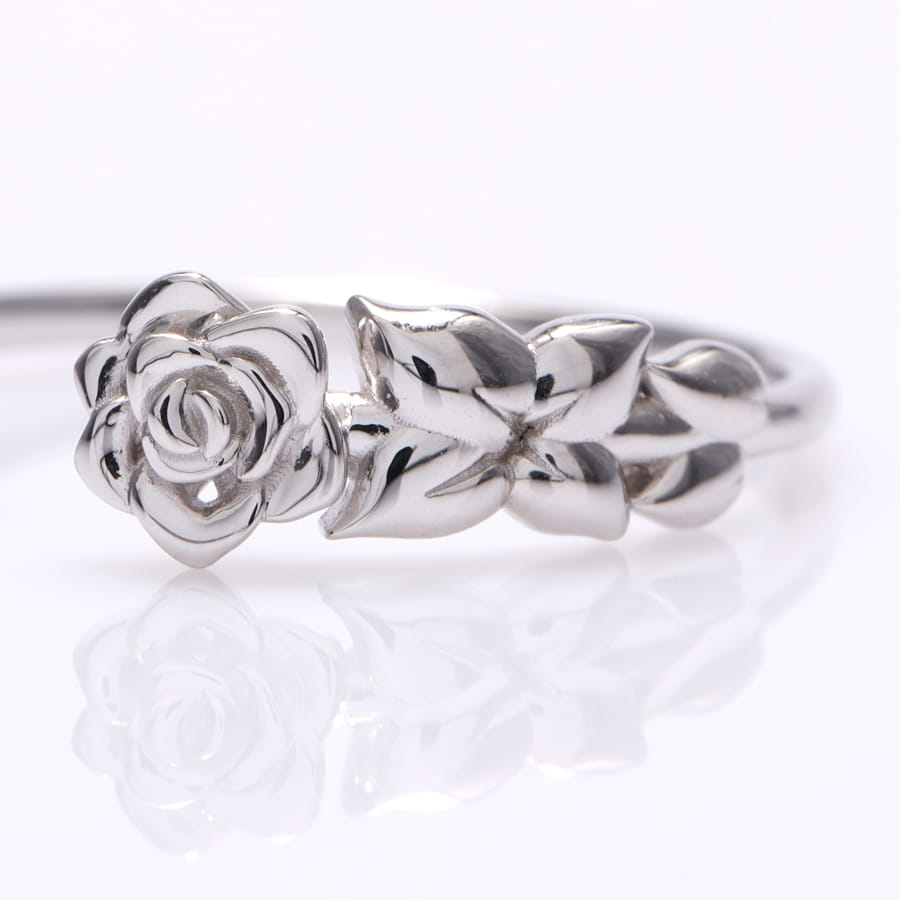 流行のフォークリングに上品なローズデザインを落とし込むことで、大人でも楽しめる可愛さに仕上がりました。