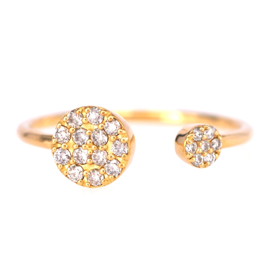 人気のフォークリングを、大きさの異なるサークルにストーンを敷き詰めたデザイン性の高いジュエリーに仕上げました。輪の一部が途切れ、隙間が空いたような形のリングで、オープンリングとも呼ばれます。