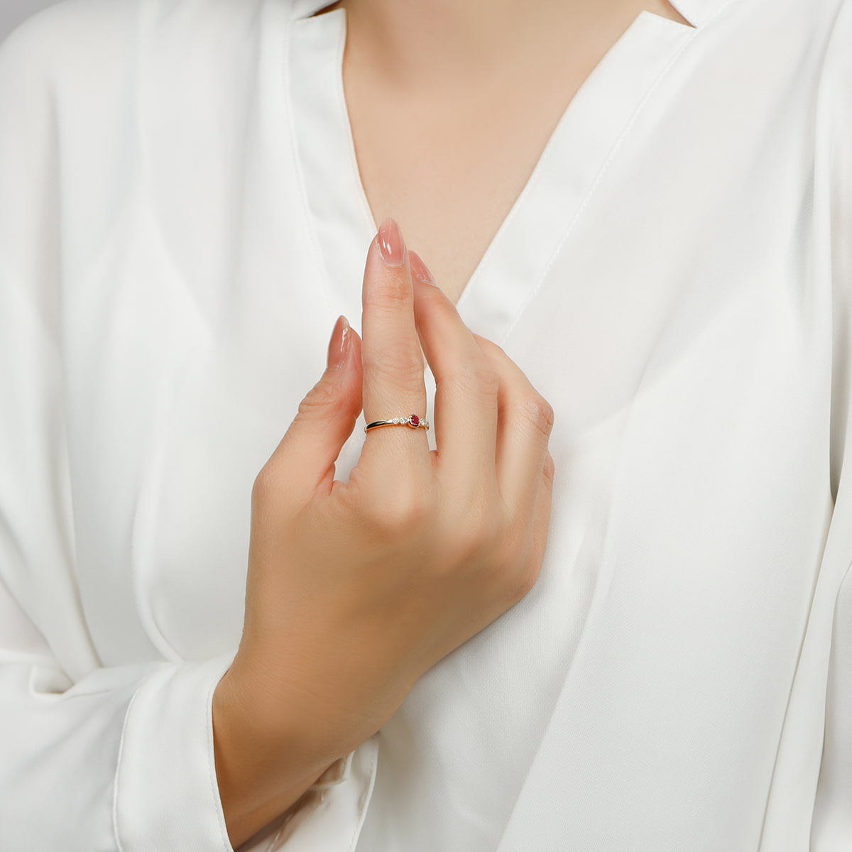鮮やかなカラーのルビーを、可憐で洗練されたデザインでお楽しみください。