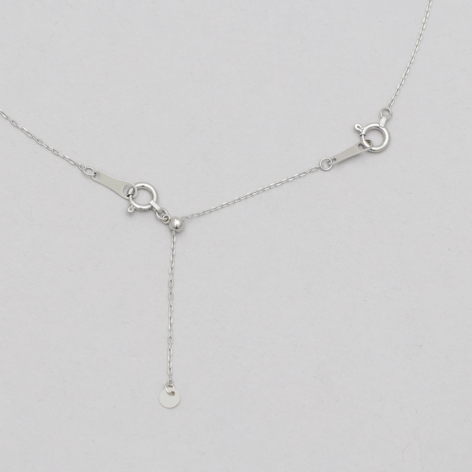 ネックレスの長さ調節に便利なスライド式の5cmアジャスターチェーン。