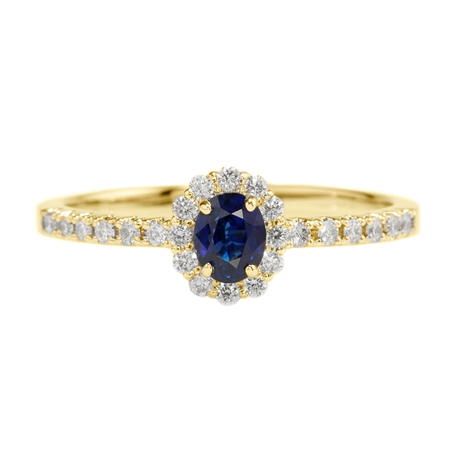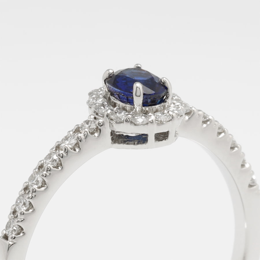 9月の誕生石である主役のサファイアを引き立たせるダイヤモンドのヘイローリング。
