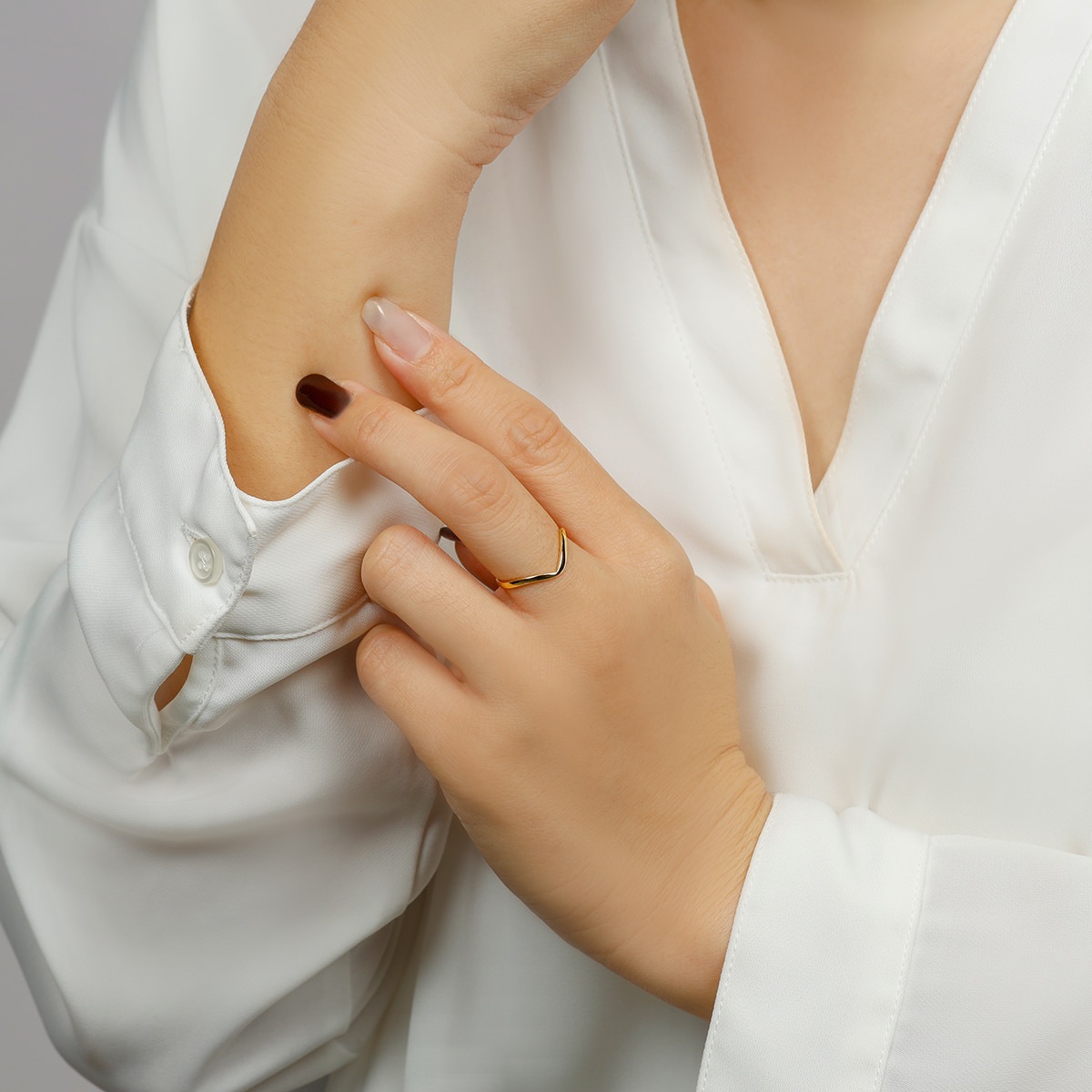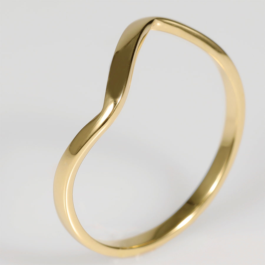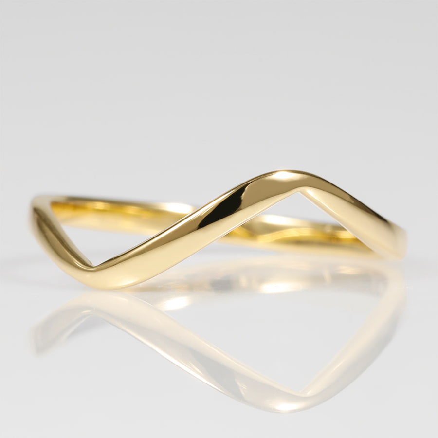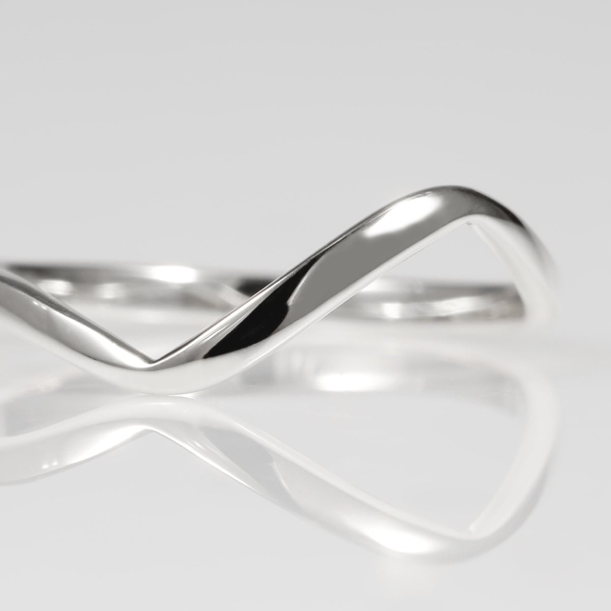 上下に大きく流れるウェーブラインが印象的なデザインリング。