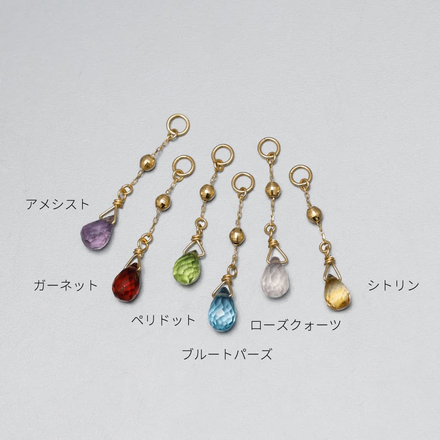 チャームS:天然カラーストーン:6種 0.50ct(1p) チャームM:天然カラーストーン:6種 0.50ct(1p) アメシスト/ガーネット/シトリン/ブルートパーズ/ペリドット/ローズクォーツ |