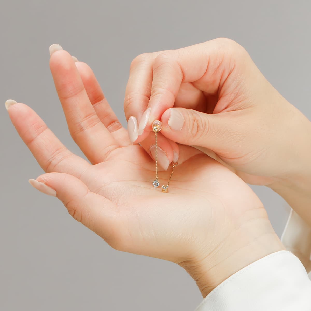 チェーン長さ:約2.5cm ピアス丸玉:約3mm ポスト長さ:約10mm×太さ:約0.8mm キャッチ:シリコンゴム付き地金キャッチ |